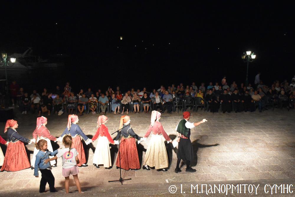 Τό πρόγραμμα συνεχίστηκε μέ παραδοσιακά Συμιακά καί Μικρασιάτικα τραγούδια, πού χόρεψαν καταπληκτικά τά μέλη τοῦ χορευτικοῦ τμήματος τῆς Ἕνωσης Γυναικῶν Σύμης.