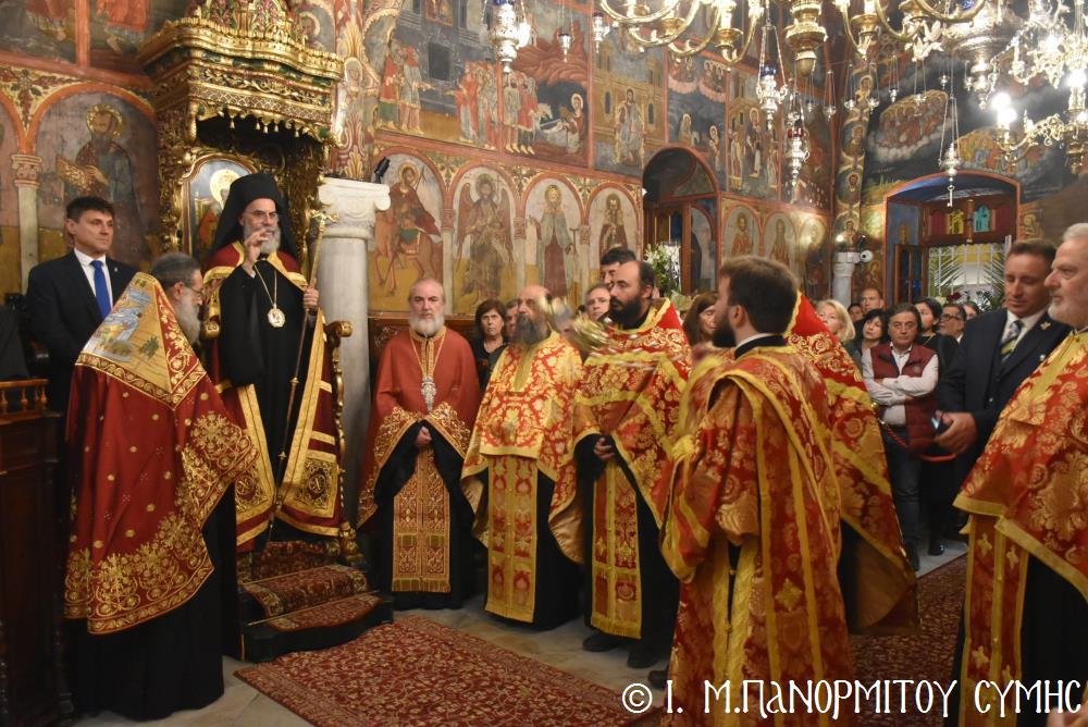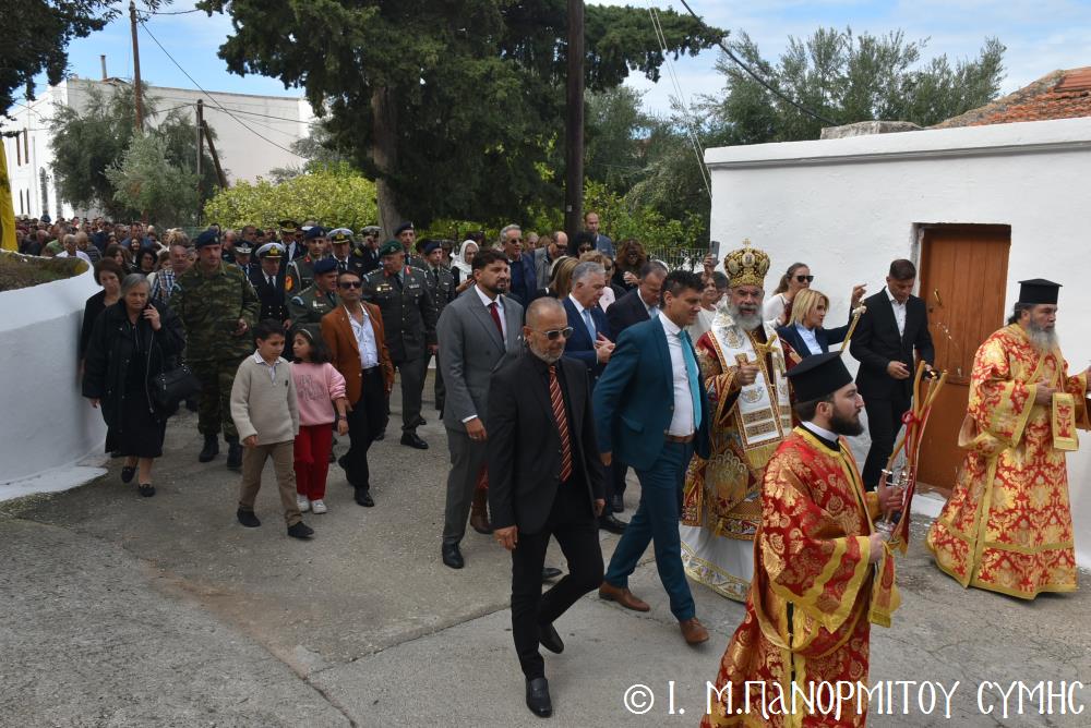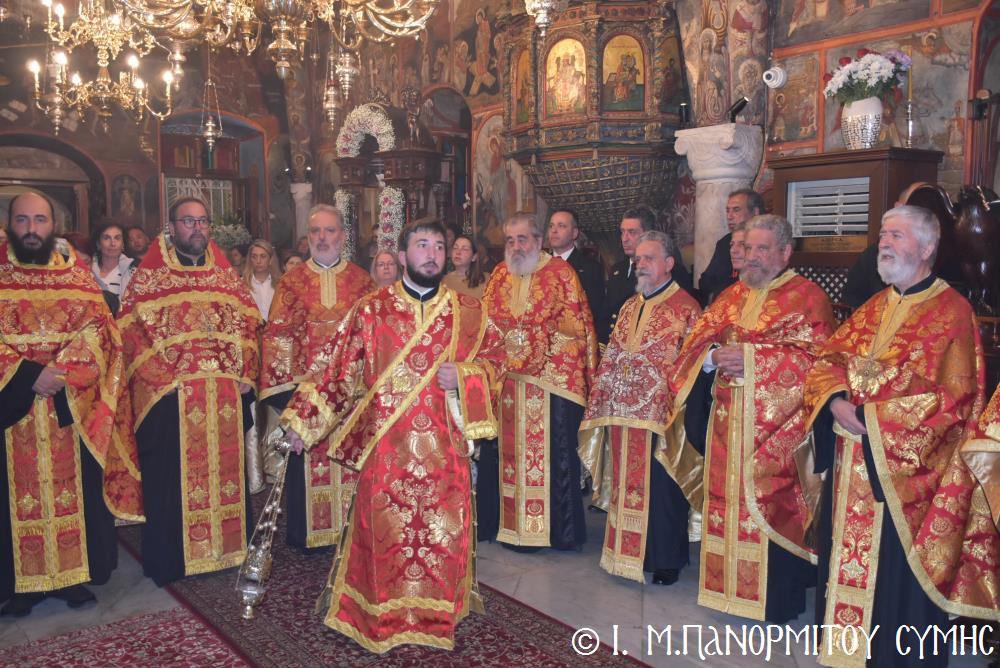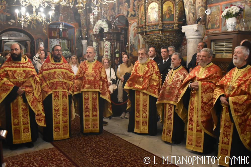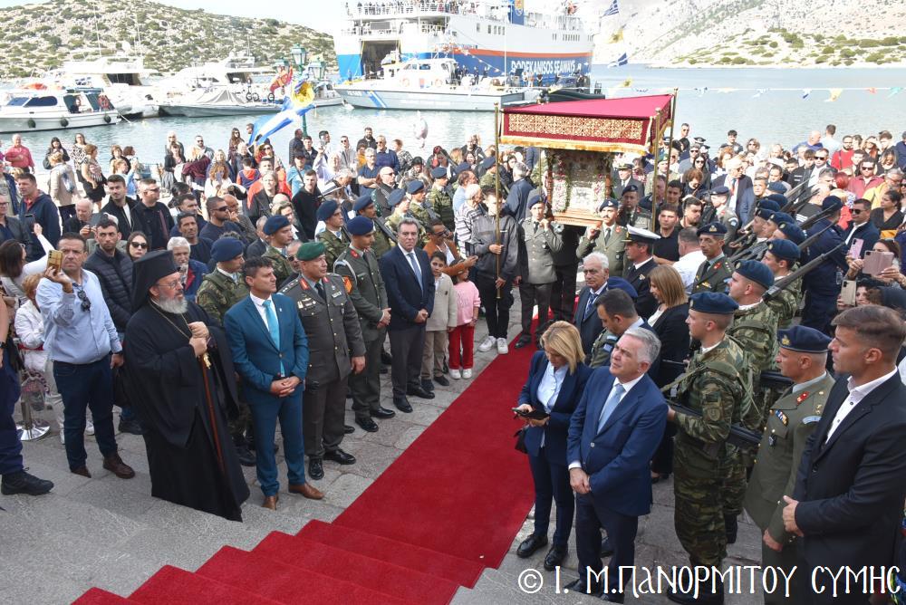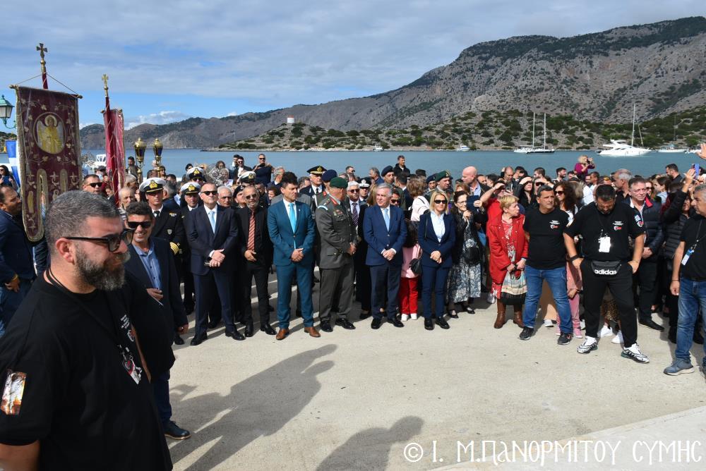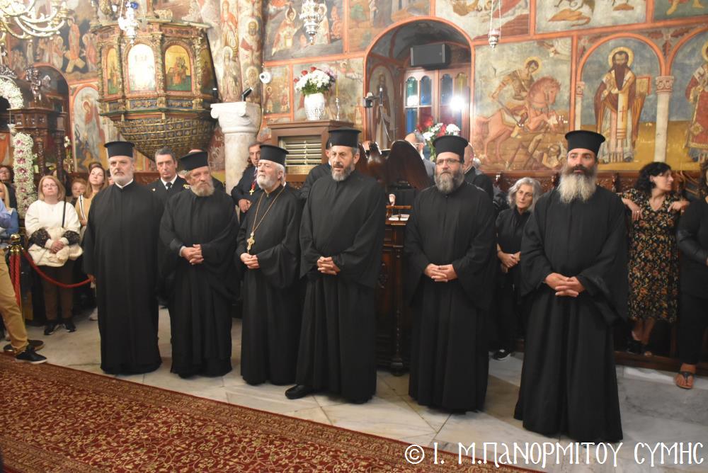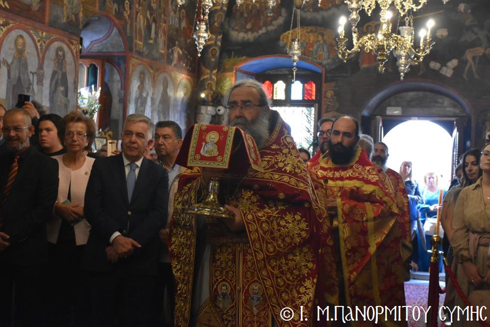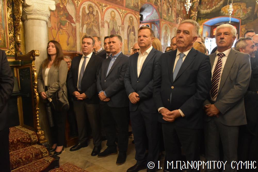 Ἐκτός τοῦ εὐσεβοῦς Λαοῦ, παρόντες ἦσαν, ὁ Δήμαρχος Σύμης κ. Ἐλευθέριος Παπακαλοδούκας, οἱ Βουλευτές Δωδεκανήσου κ.κ. Βασίλειος Ὑψηλάντης, Ἐμμανουήλ Κόνσολας, Τσαμπίκα Ἰατρίδη καί Ἰωάννης Παππᾶς, ὁ Χωρικός Περιφερειάρχης Δωδεκανήσου κ. Χρῆστος Εὐστρατίου, ὡς ἐκπρόσωπος τῆς Περιφέρειας, ὁ Διοικητὴς τῆς 95ης Ἀνώτερης Διοίκησης Ταγμάτων Ἐθνοφυλακῆς Ὑποστράτηγος κ. Σπυρίδων Κογιάννης, ὡς Ἐκπρόσωπος τοῦ Ἀρχηγοῦ ΓΕΕΘΑ Στρατηγοῦ κ. Δημητρίου Χούπη, ὁ Διευθυντής τῆς Α΄ Ἀστυνομικῆς Διευθύνσεως Δωδεκανήσου Ταξίαρχος κ. Κωνσταντίνος Σουλιώτης, ὁ ἐκπρόσωπος τῆς 8ης Περιφερειακῆς Διοικήσεως Λιμενικοῦ Σώματος - Ἑλληνικῆς Ἀκτοφυλακῆς Πλοίαρχος κ. Δημήτριος Ζαραζάνης, ὁ Διοικητής τῆς Δ.Α.Ν. Σύμης Συνταγματάρχης κ. Χαράλαμπος Κατηφόρης, οἱ Ἄρχοντες Ὀφφικιάλιοι τοῦ Οἰκουμενικοῦ μας Πατριαρχείου κ. Θεοδόσιος Κολιάδης, κ. Θεόδωρος Παπαγεωργίου καὶ κ. Ἀθανάσιος Στᾶμος, καὶ ὅλοι οἱ ἐκπρόσωποι τῶν τοπικῶν Πολιτικῶν Στρατιωτικῶν καὶ λοιπῶν Ἀρχῶν.