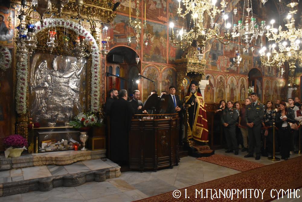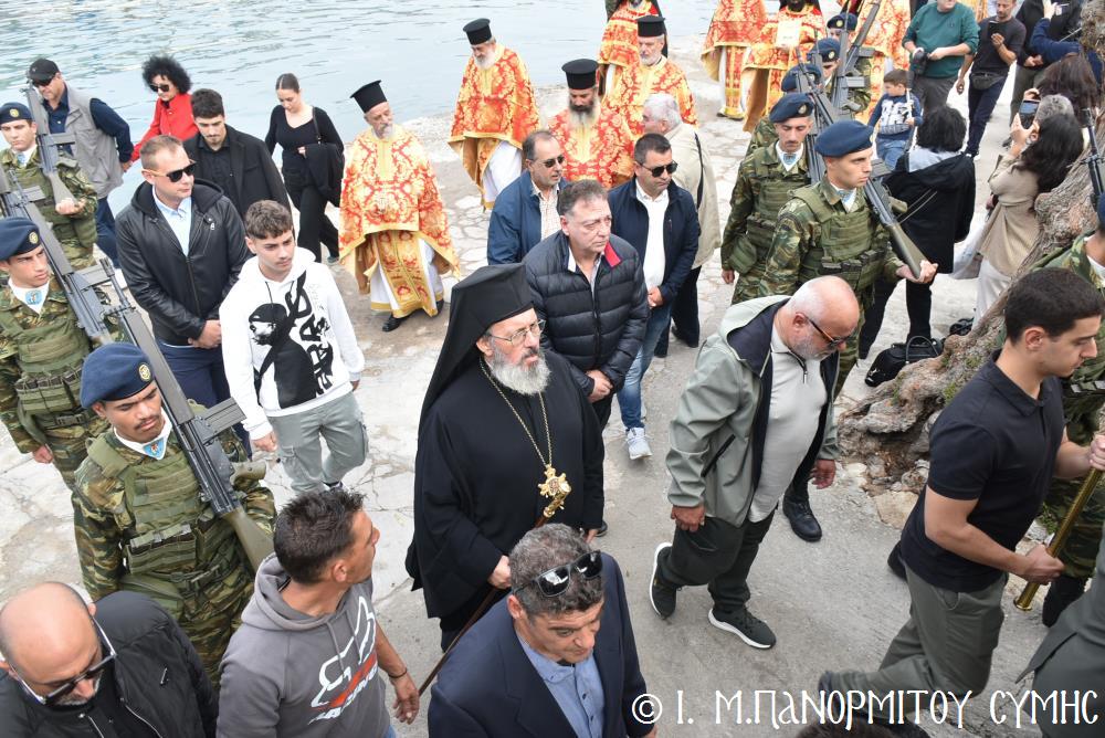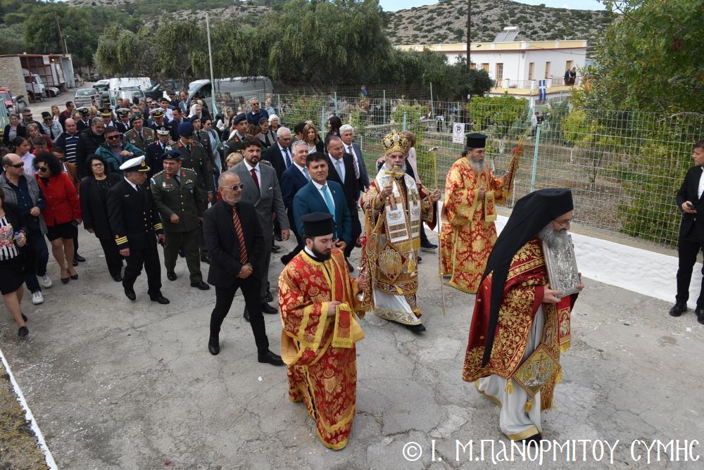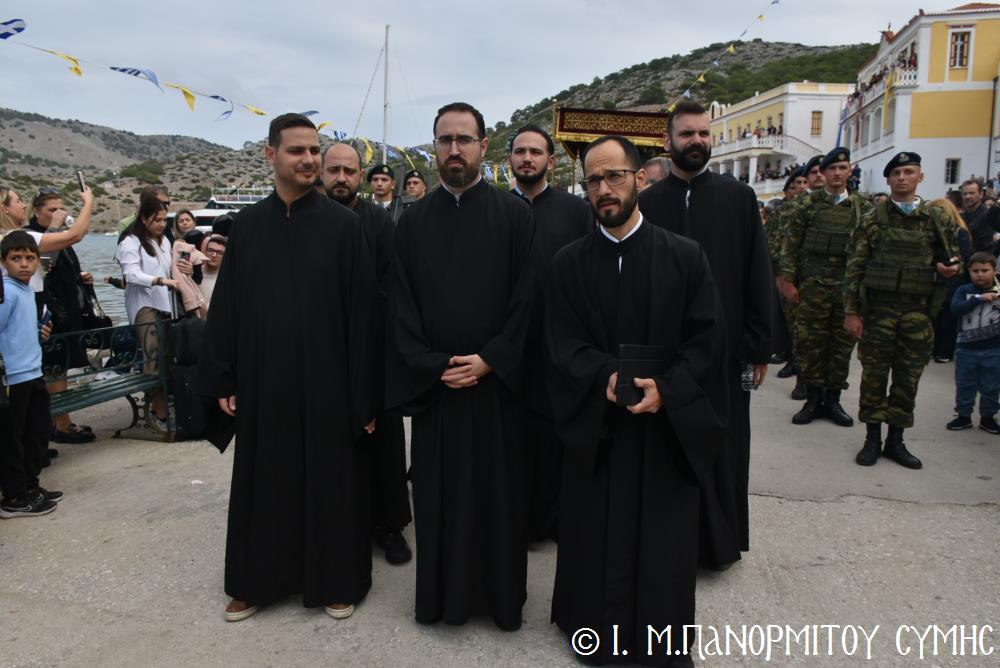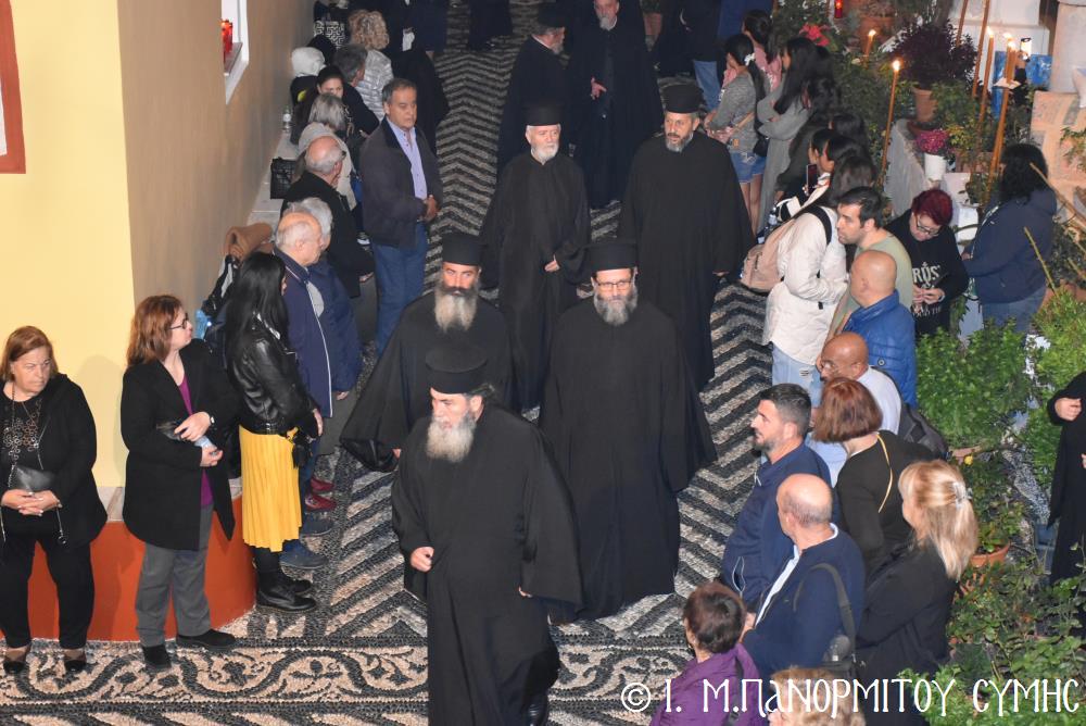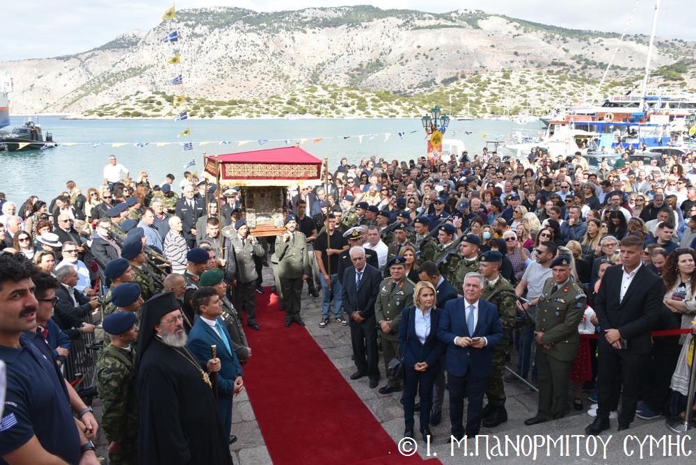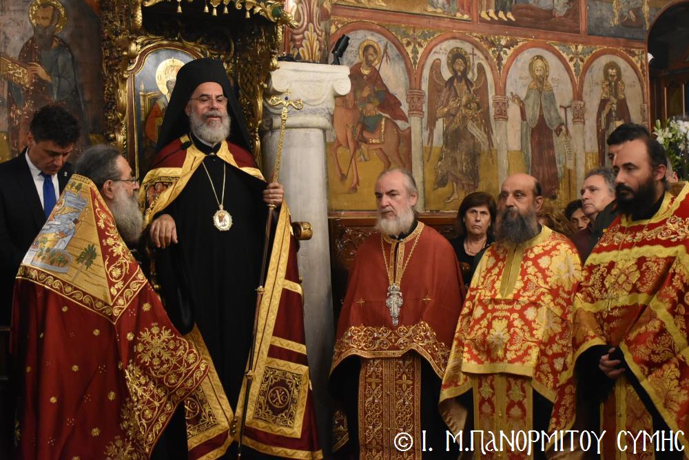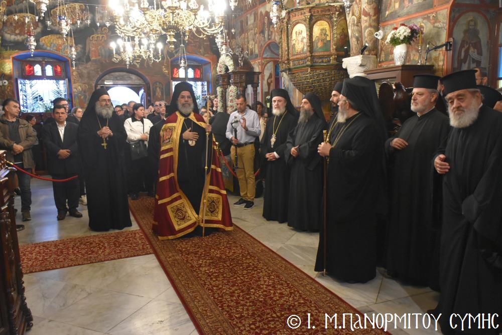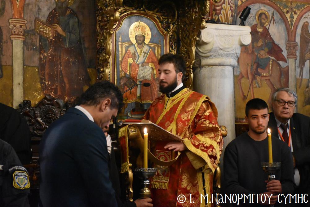 Ἐκτός τοῦ εὐσεβοῦς Λαοῦ, παρόντες ἦσαν, ὁ Δήμαρχος Σύμης κ. Ἐλευθέριος Παπακαλοδούκας, οἱ Βουλευτές Δωδεκανήσου κ.κ. Βασίλειος Ὑψηλάντης, Ἐμμανουήλ Κόνσολας, Τσαμπίκα Ἰατρίδη καί Ἰωάννης Παππᾶς, ὁ Χωρικός Περιφερειάρχης Δωδεκανήσου κ. Χρῆστος Εὐστρατίου, ὡς ἐκπρόσωπος τῆς Περιφέρειας, ὁ Διοικητὴς τῆς 95ης Ἀνώτερης Διοίκησης Ταγμάτων Ἐθνοφυλακῆς Ὑποστράτηγος κ. Σπυρίδων Κογιάννης, ὡς Ἐκπρόσωπος τοῦ Ἀρχηγοῦ ΓΕΕΘΑ Στρατηγοῦ κ. Δημητρίου Χούπη, ὁ Διευθυντής τῆς Α΄ Ἀστυνομικῆς Διευθύνσεως Δωδεκανήσου Ταξίαρχος κ. Κωνσταντίνος Σουλιώτης, ὁ ἐκπρόσωπος τῆς 8ης Περιφερειακῆς Διοικήσεως Λιμενικοῦ Σώματος - Ἑλληνικῆς Ἀκτοφυλακῆς Πλοίαρχος κ. Δημήτριος Ζαραζάνης, ὁ Διοικητής τῆς Δ.Α.Ν. Σύμης Συνταγματάρχης κ. Χαράλαμπος Κατηφόρης, οἱ Ἄρχοντες Ὀφφικιάλιοι τοῦ Οἰκουμενικοῦ μας Πατριαρχείου κ. Θεοδόσιος Κολιάδης, κ. Θεόδωρος Παπαγεωργίου καὶ κ. Ἀθανάσιος Στᾶμος, καὶ ὅλοι οἱ ἐκπρόσωποι τῶν τοπικῶν Πολιτικῶν Στρατιωτικῶν καὶ λοιπῶν Ἀρχῶν.