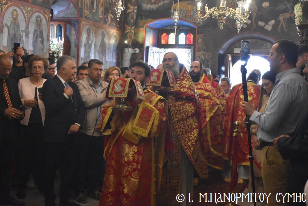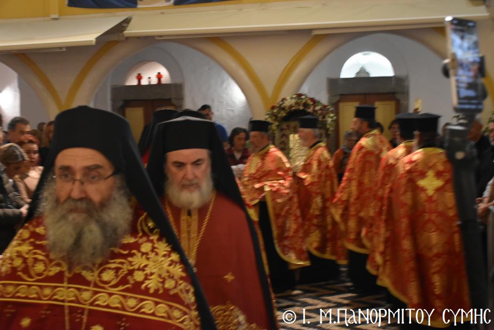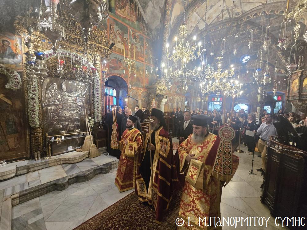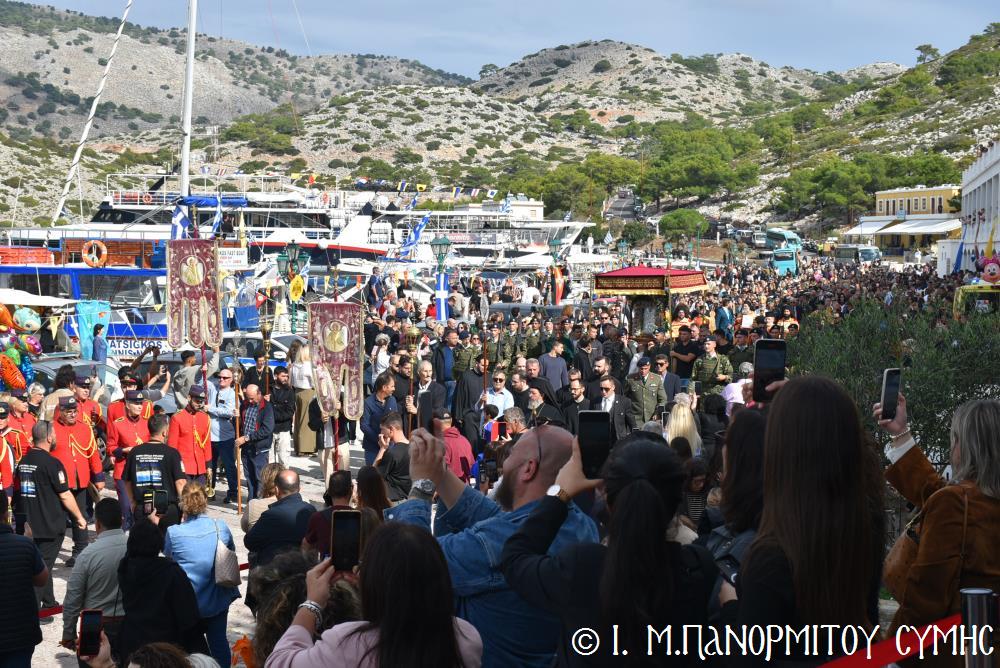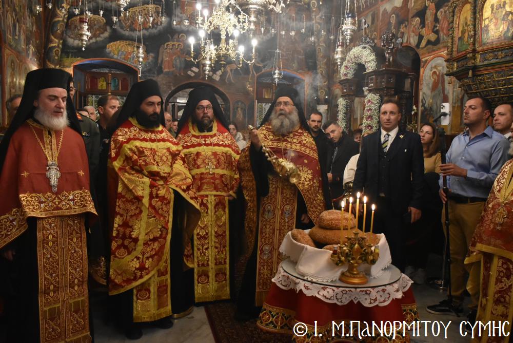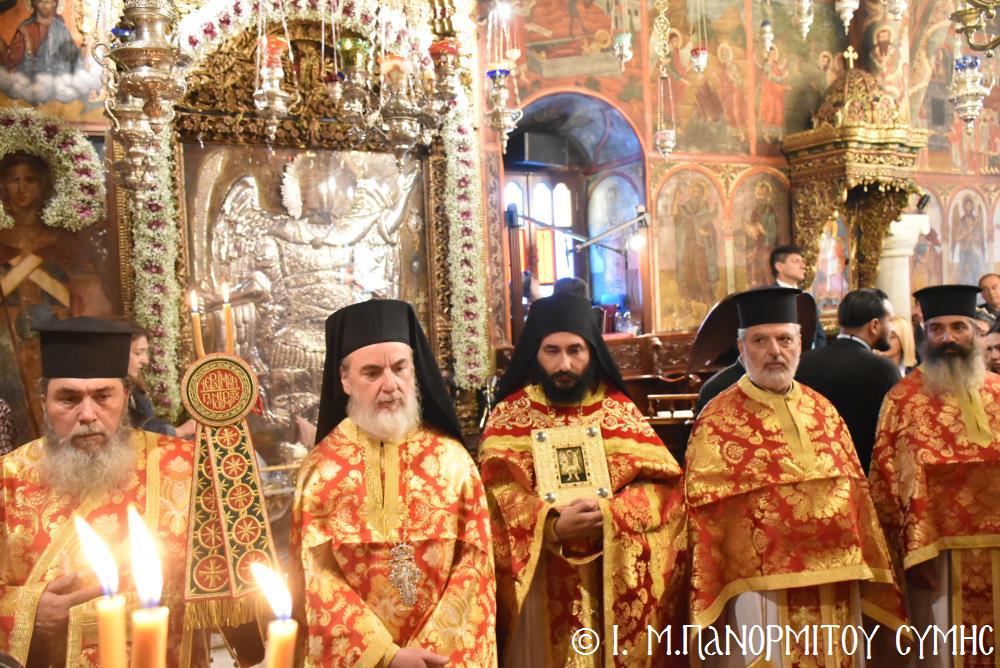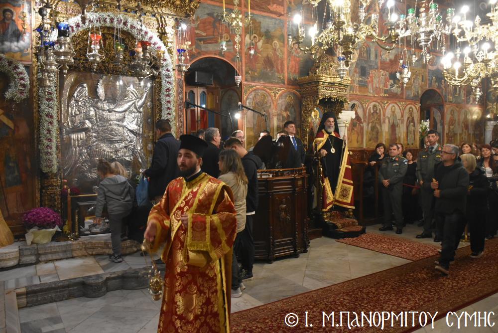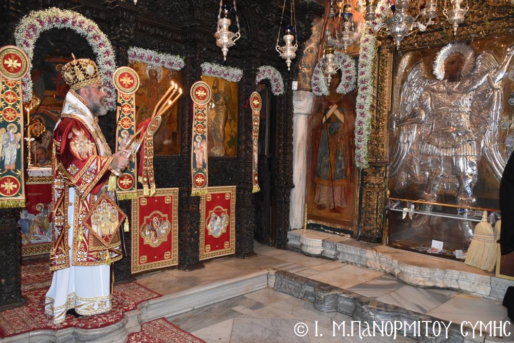 Μέ ἰδιαιτέρα λαμπρότητα καί σεμνή ἱεροπρέπεια ἡ τοπική Ἐκκλησία τῆς Σύμης, τίμησε τόν Παμμέγιστο Ἀρχάγγελο Μιχαήλ τόν Πανορμίτη, ἐδῶ στήν ὁμώνυμη Μονή Του, ὅπου σήμερα μέ τήν συμμετοχή λαοθάλασσας Πιστῶν, κορυφώθηκαν οἱ λατρευτικές ἐκδηλώσεις τῆς Ἱερᾶς Πανηγύρεως. Ὁ πνευματικός συναγερμός στό Νησί ἔχει ξεκινήσει ἤδη ἀπό τίς πρῶτες ἡμέρες τοῦ Νοεμβρίου, μέ χιλιάδες πιστούς νά καταφθάνουν ἀπ’ ὅλα τά μέρη τῆς Πατρίδος μας, γιά νά προσκυνήσουν τήν Χάρη τοῦ θαυματουργοῦ Ἀρχαγγέλου καί τό προσκύνημα συνεχίζεται ἀδιάκοπα καθ’ ὅλο τό νυχθήμερο, ἐχθές παραμονή καί σήμερα, τήν κυριώνυμη αὐτή ἡμέρα τῆς Συνάξεως τῶν Ἀρχαγγέλων. Οἱ εὐσεβεῖς προσκυνητές μέ βαθιά πίστη, ἱερό πόθο καί ἀξιοθαύμαστη ὑπομονή, σχηματίζουν οὐρές ἐνώπιον τῆς θαυματουργοῦ Εἰκόνας Του καί κλίνοντας τό γόνυ τῆς ψυχῆς καί τοῦ σώματος, ἀποθέτουν τό τᾶμα τους καί ἀνάβουν τό κερί τῆς προσευχῆς τους στόν Ἀρχάγγελο, ἄλλοι εὐχαριστῶντας γιά τήν εὐεργεσία πού ἤδη ἔλαβαν καί ἀφηγοῦνται συγκινημένοι, ἄλλοι παρακαλῶντας «ἐν δάκρυσιν», γιά νά λάβουν «τό δώρημα πρός τό συμφέρον τῆς αἰτήσεως».