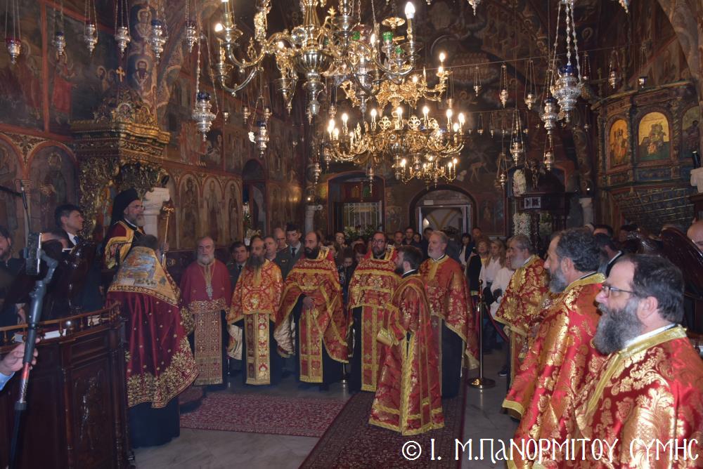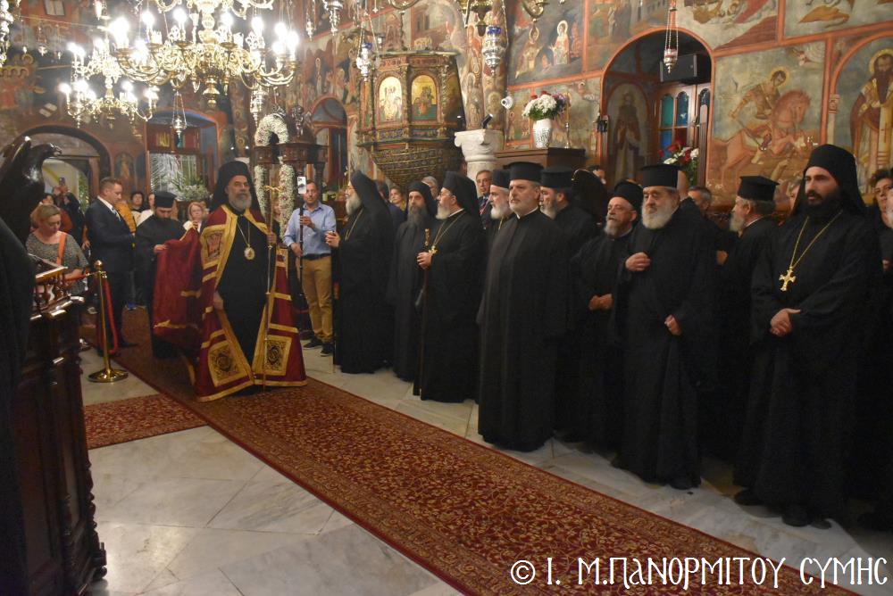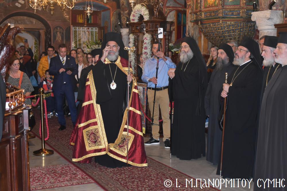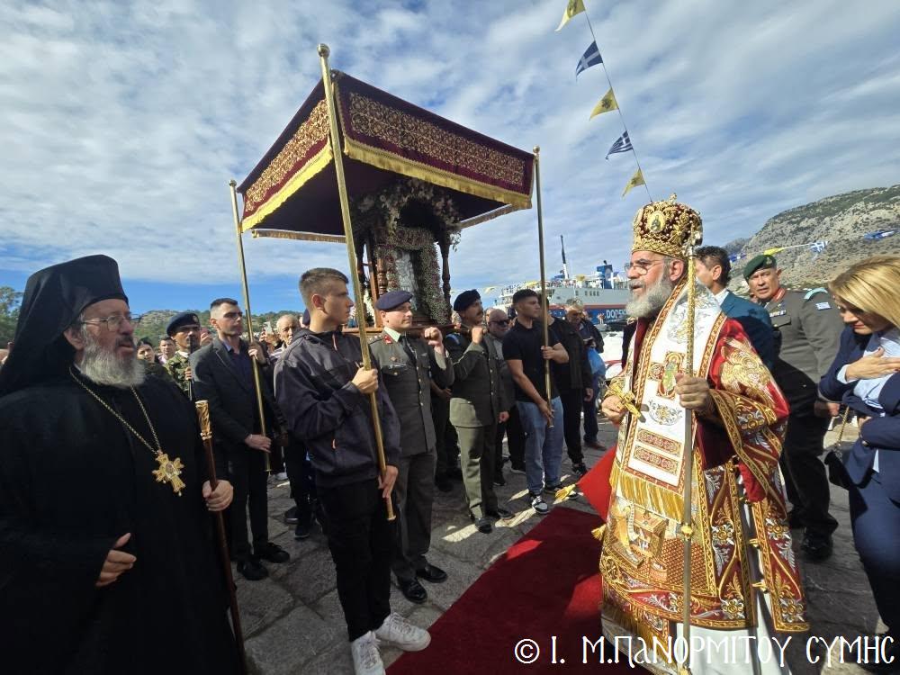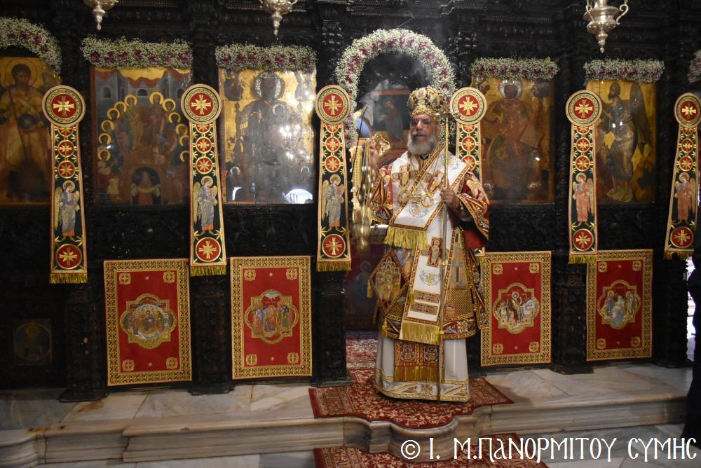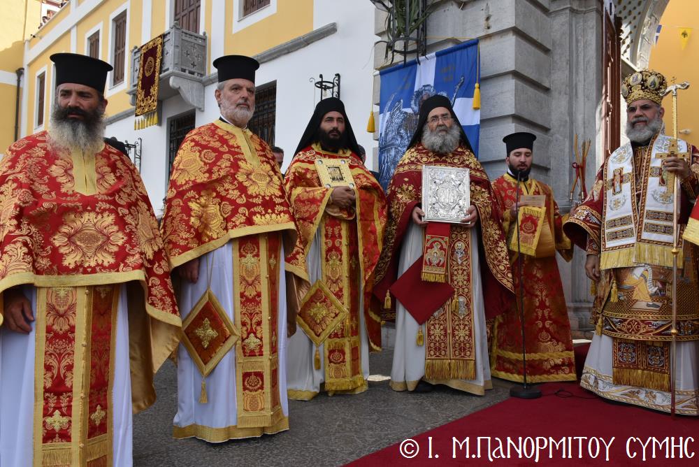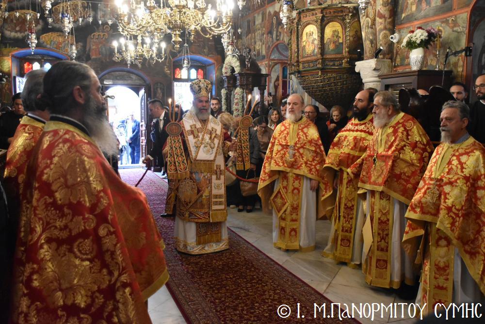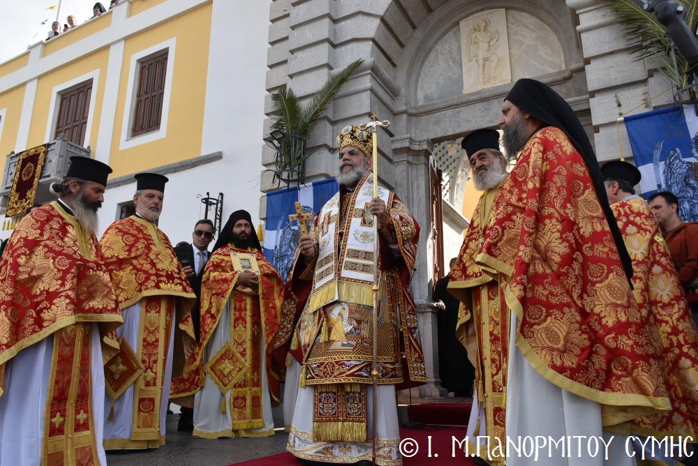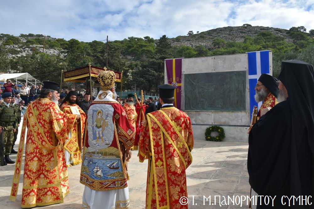 Μέ ἰδιαιτέρα λαμπρότητα καί σεμνή ἱεροπρέπεια ἡ τοπική Ἐκκλησία τῆς Σύμης, τίμησε τόν Παμμέγιστο Ἀρχάγγελο Μιχαήλ τόν Πανορμίτη, ἐδῶ στήν ὁμώνυμη Μονή Του, ὅπου σήμερα μέ τήν συμμετοχή λαοθάλασσας Πιστῶν, κορυφώθηκαν οἱ λατρευτικές ἐκδηλώσεις τῆς Ἱερᾶς Πανηγύρεως. Ὁ πνευματικός συναγερμός στό Νησί ἔχει ξεκινήσει ἤδη ἀπό τίς πρῶτες ἡμέρες τοῦ Νοεμβρίου, μέ χιλιάδες πιστούς νά καταφθάνουν ἀπ’ ὅλα τά μέρη τῆς Πατρίδος μας, γιά νά προσκυνήσουν τήν Χάρη τοῦ θαυματουργοῦ Ἀρχαγγέλου καί τό προσκύνημα συνεχίζεται ἀδιάκοπα καθ’ ὅλο τό νυχθήμερο, ἐχθές παραμονή καί σήμερα, τήν κυριώνυμη αὐτή ἡμέρα τῆς Συνάξεως τῶν Ἀρχαγγέλων. Οἱ εὐσεβεῖς προσκυνητές μέ βαθιά πίστη, ἱερό πόθο καί ἀξιοθαύμαστη ὑπομονή, σχηματίζουν οὐρές ἐνώπιον τῆς θαυματουργοῦ Εἰκόνας Του καί κλίνοντας τό γόνυ τῆς ψυχῆς καί τοῦ σώματος, ἀποθέτουν τό τᾶμα τους καί ἀνάβουν τό κερί τῆς προσευχῆς τους στόν Ἀρχάγγελο, ἄλλοι εὐχαριστῶντας γιά τήν εὐεργεσία πού ἤδη ἔλαβαν καί ἀφηγοῦνται συγκινημένοι, ἄλλοι παρακαλῶντας «ἐν δάκρυσιν», γιά νά λάβουν «τό δώρημα πρός τό συμφέρον τῆς αἰτήσεως».