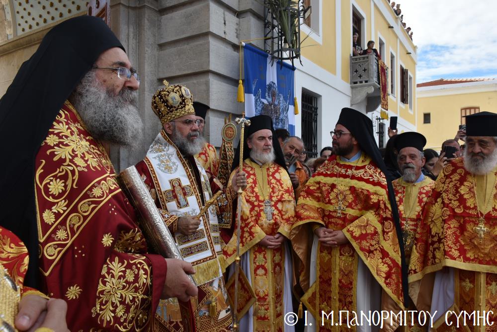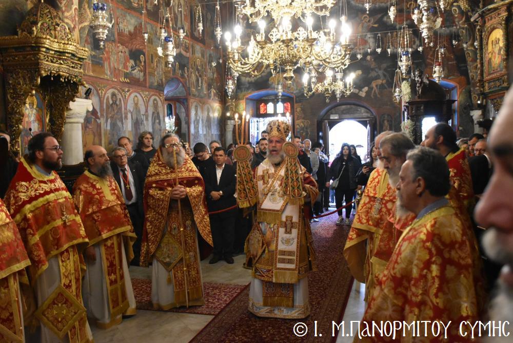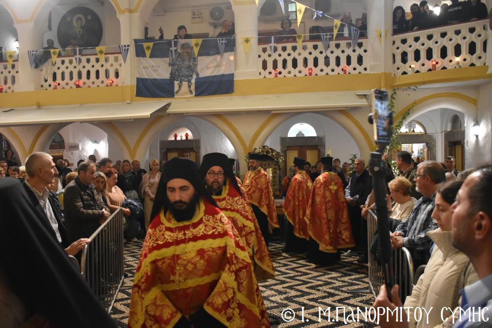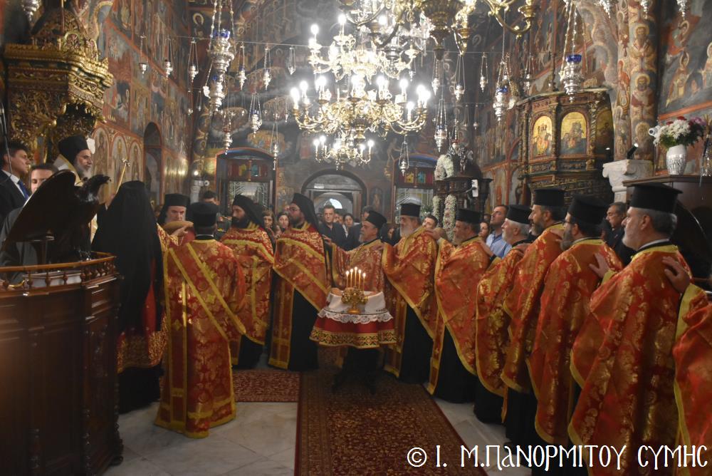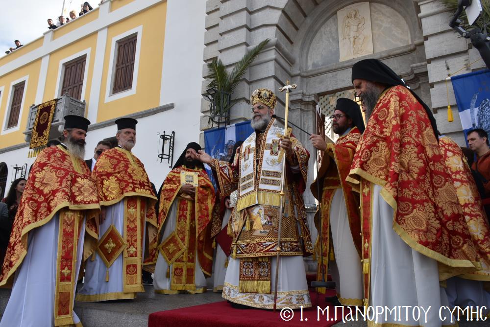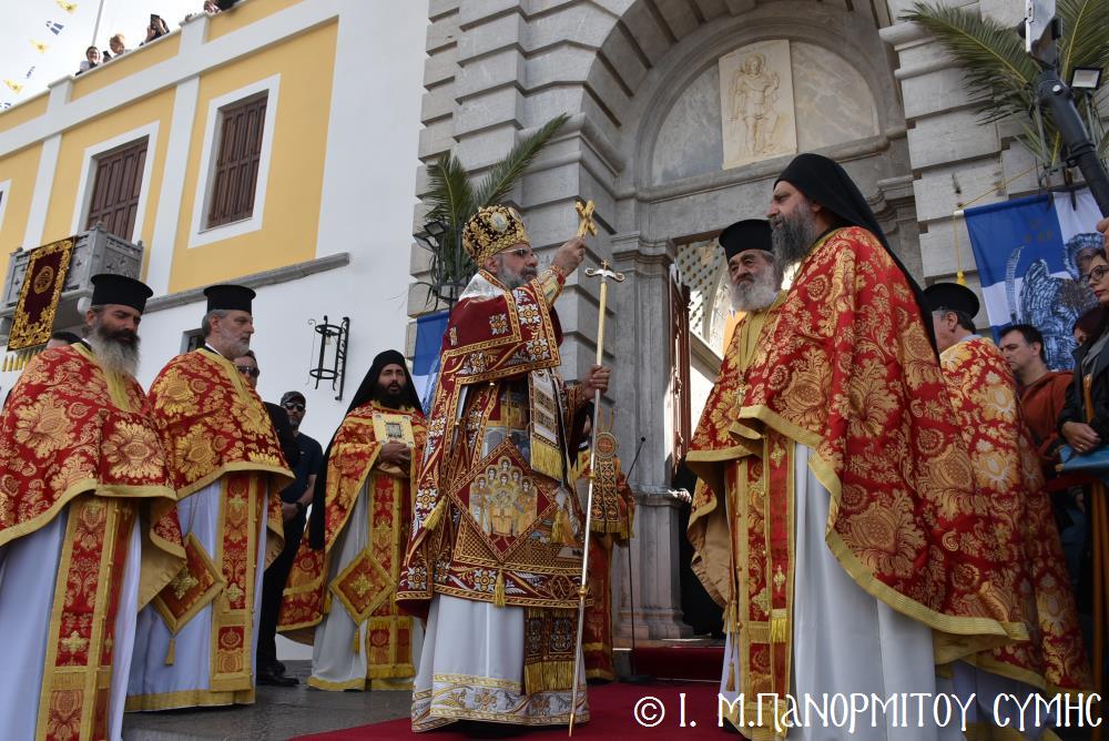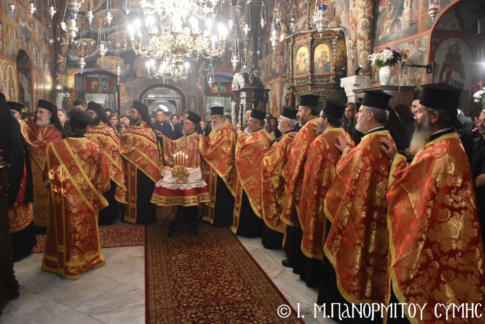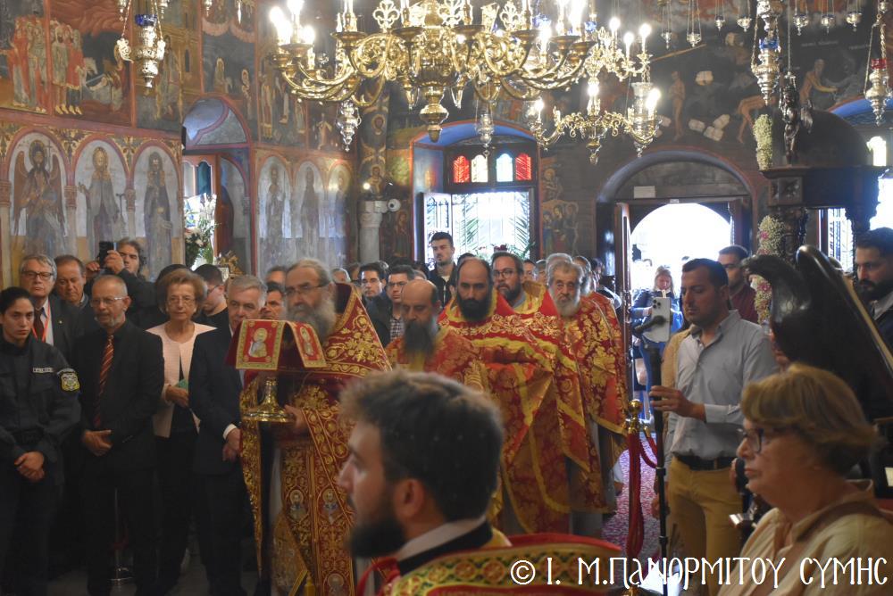 Μέ ἰδιαιτέρα λαμπρότητα καί σεμνή ἱεροπρέπεια ἡ τοπική Ἐκκλησία τῆς Σύμης, τίμησε τόν Παμμέγιστο Ἀρχάγγελο Μιχαήλ τόν Πανορμίτη, ἐδῶ στήν ὁμώνυμη Μονή Του, ὅπου σήμερα μέ τήν συμμετοχή λαοθάλασσας Πιστῶν, κορυφώθηκαν οἱ λατρευτικές ἐκδηλώσεις τῆς Ἱερᾶς Πανηγύρεως. Ὁ πνευματικός συναγερμός στό Νησί ἔχει ξεκινήσει ἤδη ἀπό τίς πρῶτες ἡμέρες τοῦ Νοεμβρίου, μέ χιλιάδες πιστούς νά καταφθάνουν ἀπ’ ὅλα τά μέρη τῆς Πατρίδος μας, γιά νά προσκυνήσουν τήν Χάρη τοῦ θαυματουργοῦ Ἀρχαγγέλου καί τό προσκύνημα συνεχίζεται ἀδιάκοπα καθ’ ὅλο τό νυχθήμερο, ἐχθές παραμονή καί σήμερα, τήν κυριώνυμη αὐτή ἡμέρα τῆς Συνάξεως τῶν Ἀρχαγγέλων. Οἱ εὐσεβεῖς προσκυνητές μέ βαθιά πίστη, ἱερό πόθο καί ἀξιοθαύμαστη ὑπομονή, σχηματίζουν οὐρές ἐνώπιον τῆς θαυματουργοῦ Εἰκόνας Του καί κλίνοντας τό γόνυ τῆς ψυχῆς καί τοῦ σώματος, ἀποθέτουν τό τᾶμα τους καί ἀνάβουν τό κερί τῆς προσευχῆς τους στόν Ἀρχάγγελο, ἄλλοι εὐχαριστῶντας γιά τήν εὐεργεσία πού ἤδη ἔλαβαν καί ἀφηγοῦνται συγκινημένοι, ἄλλοι παρακαλῶντας «ἐν δάκρυσιν», γιά νά λάβουν «τό δώρημα πρός τό συμφέρον τῆς αἰτήσεως».