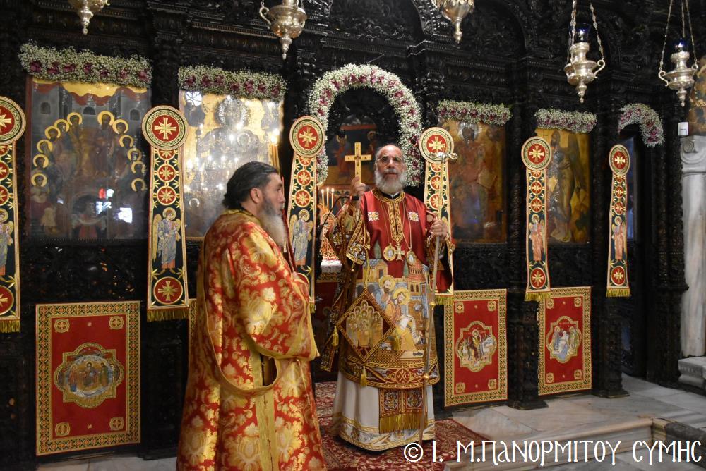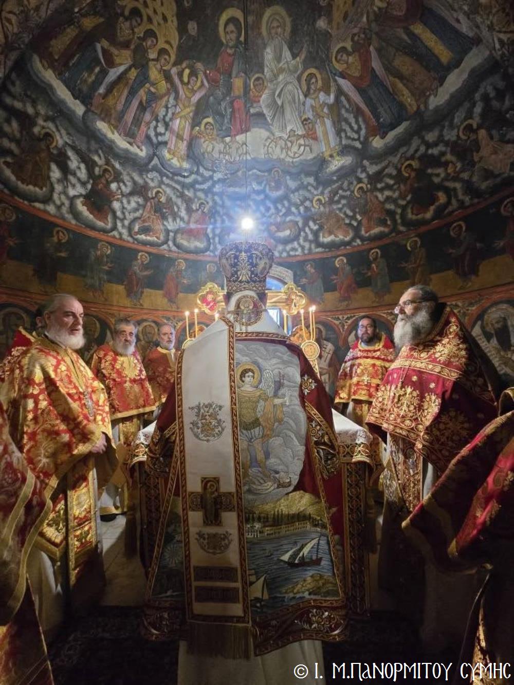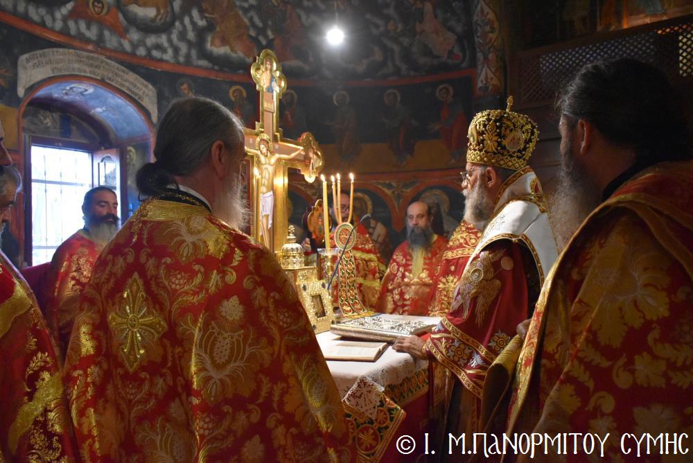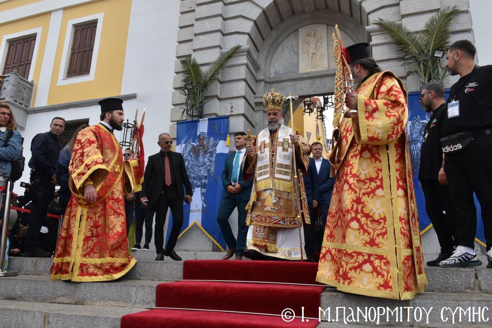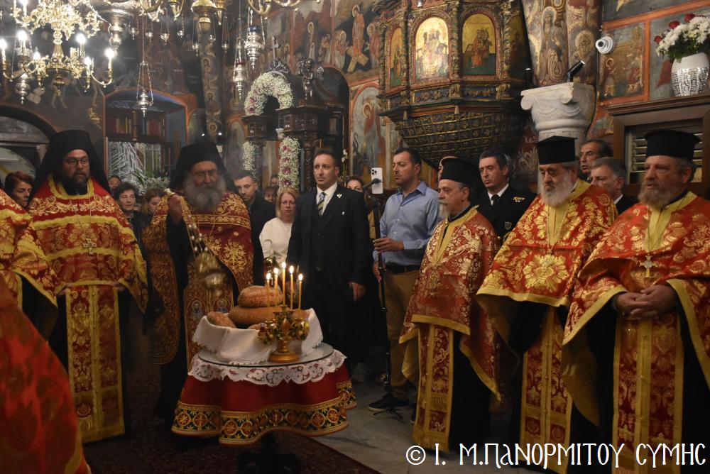 Ἡ Λιτανεία τέλος, κατέληξε καὶ πάλι στὴν κεντρικὴ Πύλη, ὅπου ἀνεπέμφθη ἡ καθιερωμένη Δέησις καί ὁ Σεβ. Ποιμενάρχης μας κ. Χρυσόστομος ἔκανε τήν Ἀπόλυση, εὐχαριστῶν ὅλους τούς ἐπωνύμους καὶ ἀνωνύμους γιὰ τὴν παρουσία τους, τὸν ἱερὸ Κλῆρο καὶ τὸν Λαὸ γιὰ τὴν ἀγάπη τους καὶ τὴν συμμετοχή τους, τόν ἐψηφισμένο Ἐπίσκοπο Ροδοστόλου - Ἡγούμενο καί τὰ μέλη τῆς Ἐφορείας τῆς Ἱερᾶς Μονῆς, τοὺς Ἱεροψάλτες, τοὺς Τοπικοὺς Φορεῖς καὶ τοὺς πολλοὺς ἐθελοντὲς γιὰ τὴν συνεργασία καὶ τὴν βοήθειά τους στὴν ἄρτια διοργάνωση καί ὑλοποίηση καί τῆς ἐφετινῆς Πανηγύρεως. Ὁ Σεβασμιώτατος ἀνεφέρθη ἰδιαιτέρως στήν δημοσίευση τοῦ Προεδρικοῦ Διατάγματος ὑπ’ ἀριθ. 90/2025 στὸ ΦΕΚ μέ ἀριθ. 182/Α΄/23-10-2025, διά τοῦ ὁποίου καθιερώνεται πλέον καί ἐπισήμως ὡς ἀργία διὰ τὸν Δῆμο Σύμης ἡ 8η Νοεμβρίου, ἡμέρα τῆς ἑορτῆς τοῦ Παμμεγίστου Ταξιάρχου Μιχαήλ τοῦ Πανορμίτου, Προστάτου καί «Πολιούχου» τῆς Νήσου Σύμης.