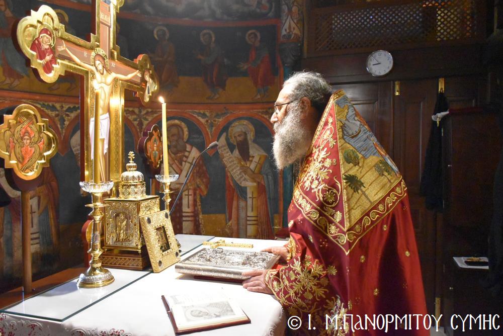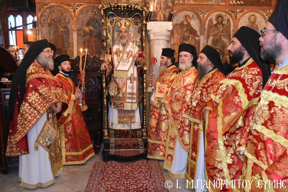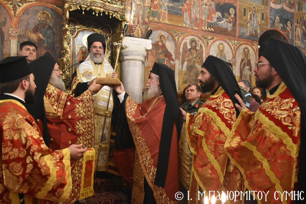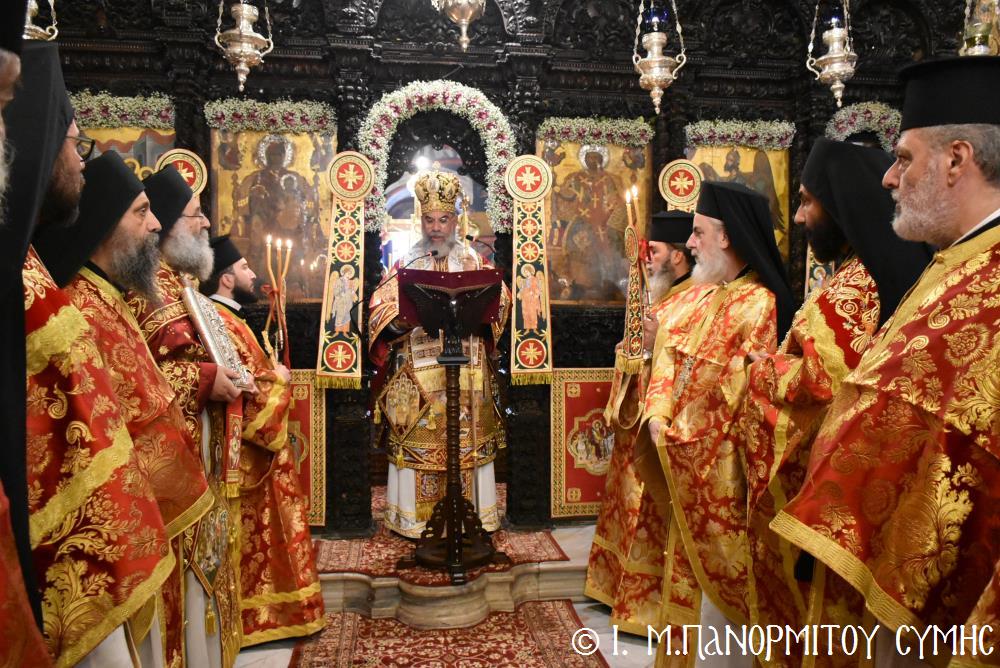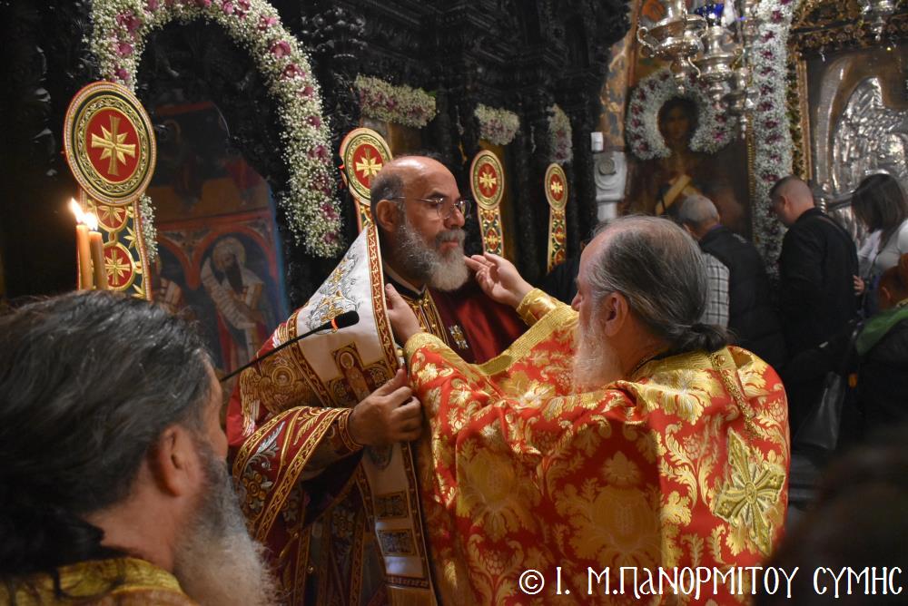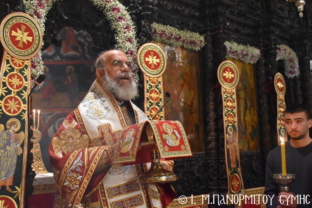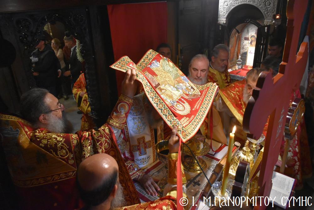 Ἡ Λιτανεία τέλος, κατέληξε καὶ πάλι στὴν κεντρικὴ Πύλη, ὅπου ἀνεπέμφθη ἡ καθιερωμένη Δέησις καί ὁ Σεβ. Ποιμενάρχης μας κ. Χρυσόστομος ἔκανε τήν Ἀπόλυση, εὐχαριστῶν ὅλους τούς ἐπωνύμους καὶ ἀνωνύμους γιὰ τὴν παρουσία τους, τὸν ἱερὸ Κλῆρο καὶ τὸν Λαὸ γιὰ τὴν ἀγάπη τους καὶ τὴν συμμετοχή τους, τόν ἐψηφισμένο Ἐπίσκοπο Ροδοστόλου - Ἡγούμενο καί τὰ μέλη τῆς Ἐφορείας τῆς Ἱερᾶς Μονῆς, τοὺς Ἱεροψάλτες, τοὺς Τοπικοὺς Φορεῖς καὶ τοὺς πολλοὺς ἐθελοντὲς γιὰ τὴν συνεργασία καὶ τὴν βοήθειά τους στὴν ἄρτια διοργάνωση καί ὑλοποίηση καί τῆς ἐφετινῆς Πανηγύρεως. Ὁ Σεβασμιώτατος ἀνεφέρθη ἰδιαιτέρως στήν δημοσίευση τοῦ Προεδρικοῦ Διατάγματος ὑπ’ ἀριθ. 90/2025 στὸ ΦΕΚ μέ ἀριθ. 182/Α΄/23-10-2025, διά τοῦ ὁποίου καθιερώνεται πλέον καί ἐπισήμως ὡς ἀργία διὰ τὸν Δῆμο Σύμης ἡ 8η Νοεμβρίου, ἡμέρα τῆς ἑορτῆς τοῦ Παμμεγίστου Ταξιάρχου Μιχαήλ τοῦ Πανορμίτου, Προστάτου καί «Πολιούχου» τῆς Νήσου Σύμης.