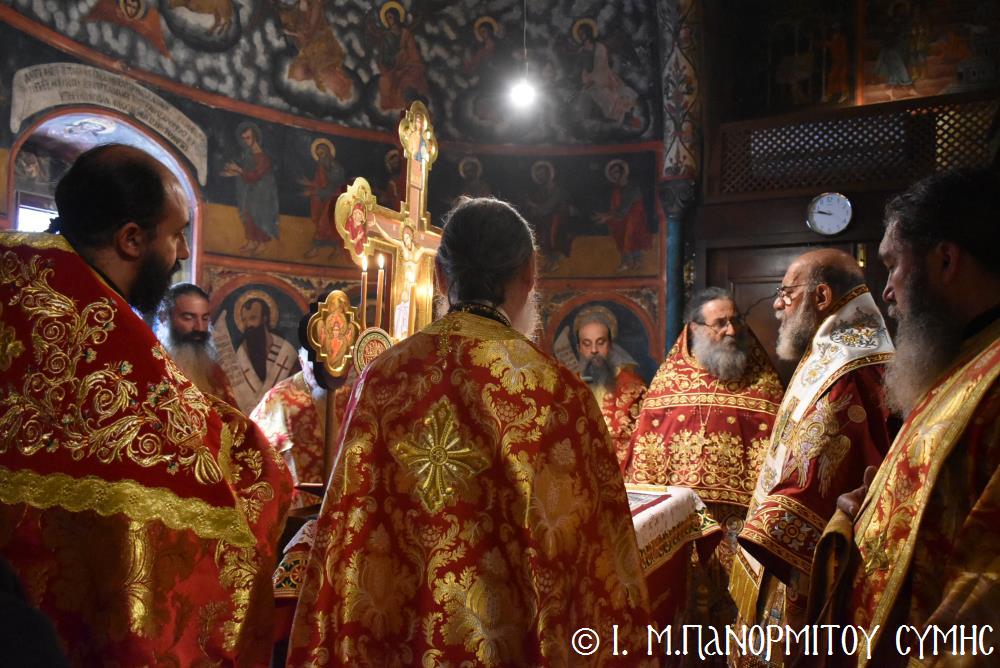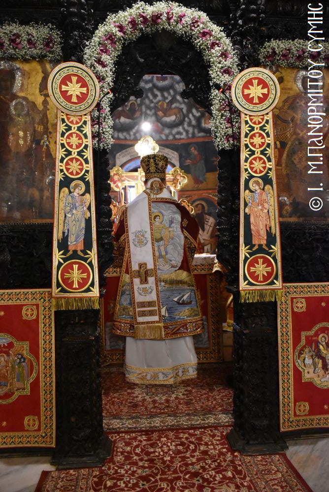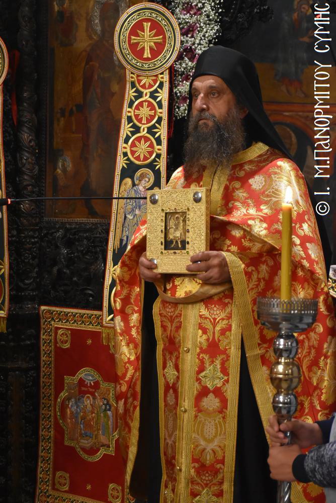 Ἐχθές, τό ἑσπέρας τῆς παραμονῆς, ὁ Σεβ. Μητροπολίτης μας κ. Χρυσόστομος χοροστάτησε εἰς τόν Μέγα Πανηγυρικό Ἑσπερινό, συμπαραστατούμενος ἀπὸ τὸν Πανοσιολ. Καθηγούμενο τῆς Ἱερᾶς Πατριαρχικῆς καὶ Σταυροπηγιακῆς Μονῆς Ἰβήρων τοῦ Ἁγίου Ὄρους Ἀρχιμ. π. Ναθαναὴλ καί τόν Ἱερομ. π. Ἀθανάσιο Ἰβηρίτη, τούς Πανοσιολ. Ἀρχιμανδρίτες, π. Εὐθύμιο Βακαλάκη, κληρικό τῆς Ἱ. Μητροπόλεως Θεσσαλονίκης, π. Ἰωαννίκιο Ἀναγνώστου κληρικό τῆς Ἱ. Μητροπόλεως Ρόδου, π. Ἰωσήφ Ἀδαμόπουλο, Συμαῖο κληρικό τῆς Ἱ. Μητροπόλεως Νικαίας, τοὺς Αἰδεσιμ. Ἐφημερίους, π. Παναγιώτη Τσιριγώτη καί π. Ἐμμανουήλ Ὀθίτη συνταξιούχους κληρικούς, τόν Δρ. π. Γεώργιο Σταθόπουλο κληρικό τῆς Ἱ. Μητροπόλεως Ἠλείας, ἅπαντες τούς Ἐφημερίους τῆς Σύμης, ὡς καὶ τούς Διακόνους μας π. Παῦλο Τερεζάκη, ἀδελφό τῆς Ἱ. Μονῆς καί π. Νικόλαο Καρμανιῶλο, συμπροσευχομένου ἐν τῷ Ἱερῷ Βήματι τοῦ ἐψηφισμένου Θεοφιλ. Ἐπισκόπου Ροδοστόλου κ. Ἀντωνίου, Καθηγουμένου τῆς Ἱ. Μονῆς. Πρὸ δέ τῆς Ἀπολύσεως, ὁ Σεβασμιώτατος μὲ τό ἐγνωσμένο του κηρυκτικό τάλαντο, ἀνέπτυξε τὴν ὀρθόδοξη διδασκαλία περὶ τῶν ἁγίων Ἀγγέλων, ὥστε νὰ ὠφεληθοῦν οἱ πιστοὶ ἀκροώμενοι καὶ τὸν θεῖον λόγον.