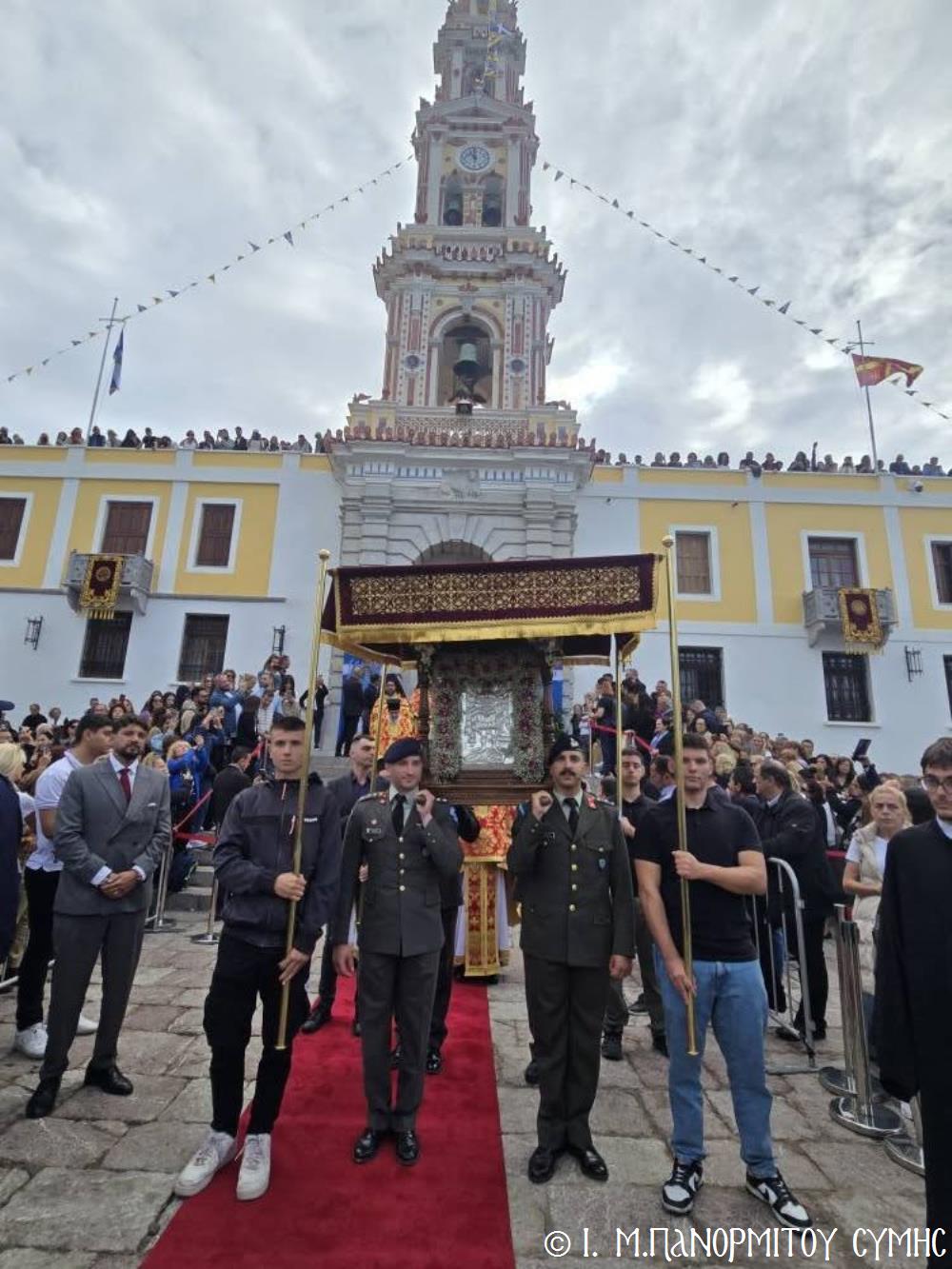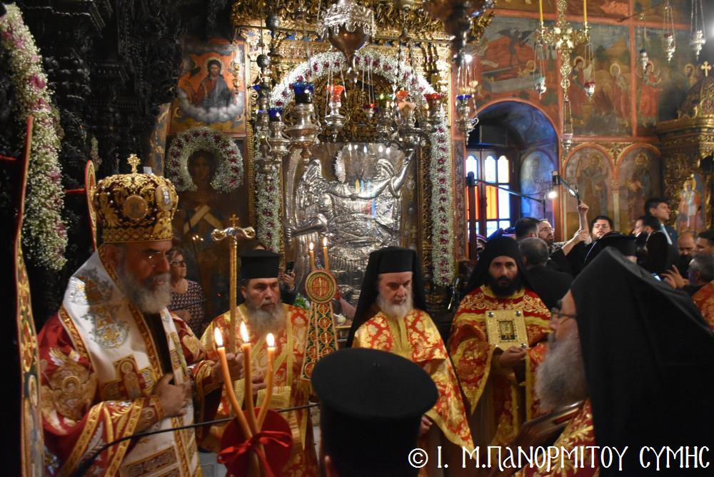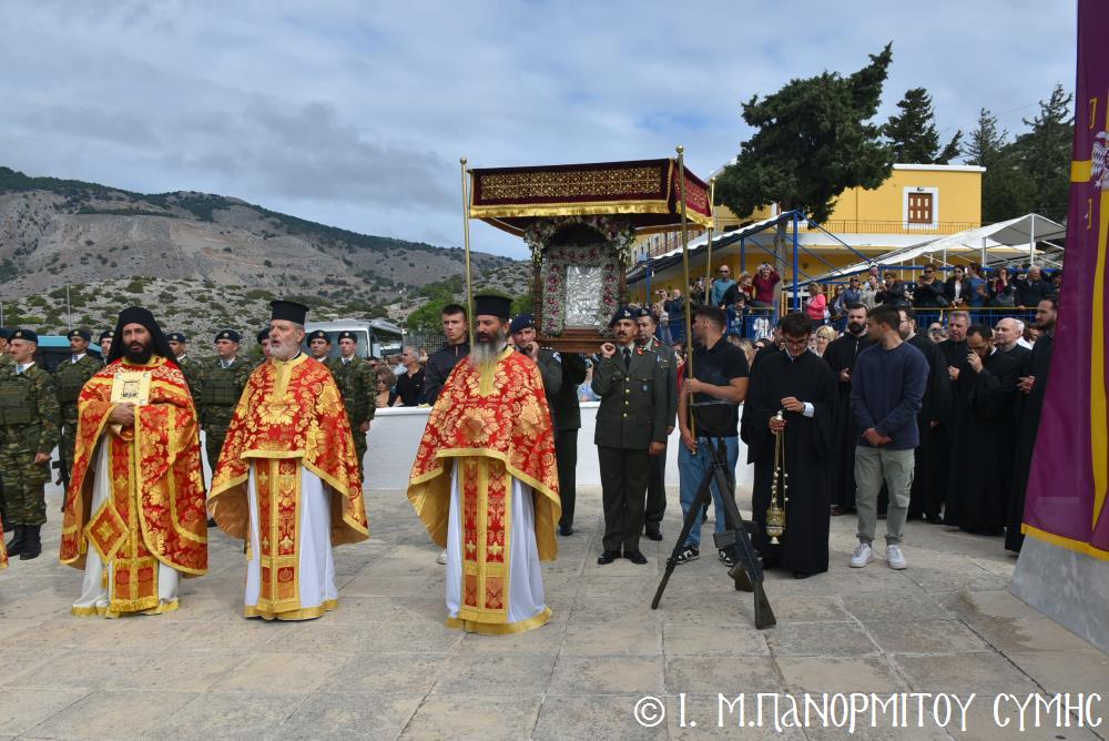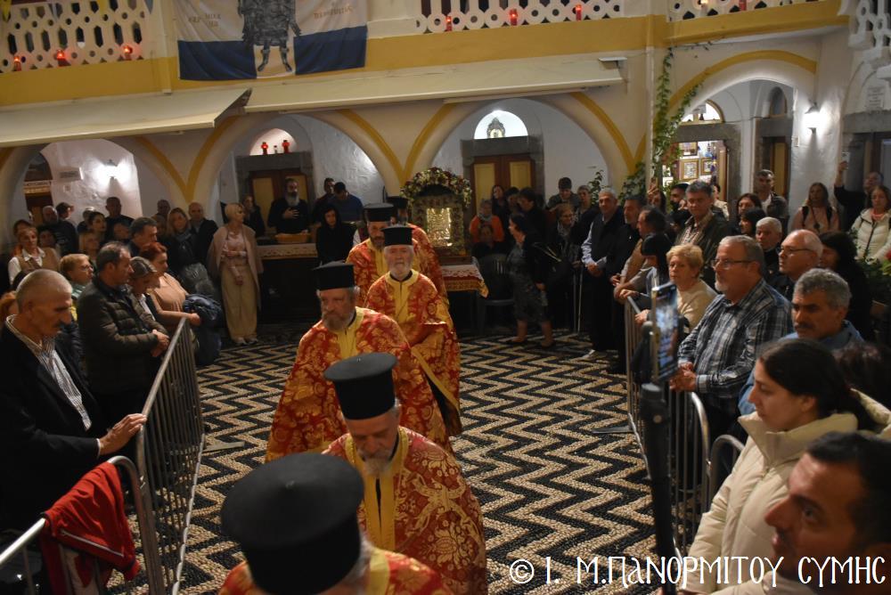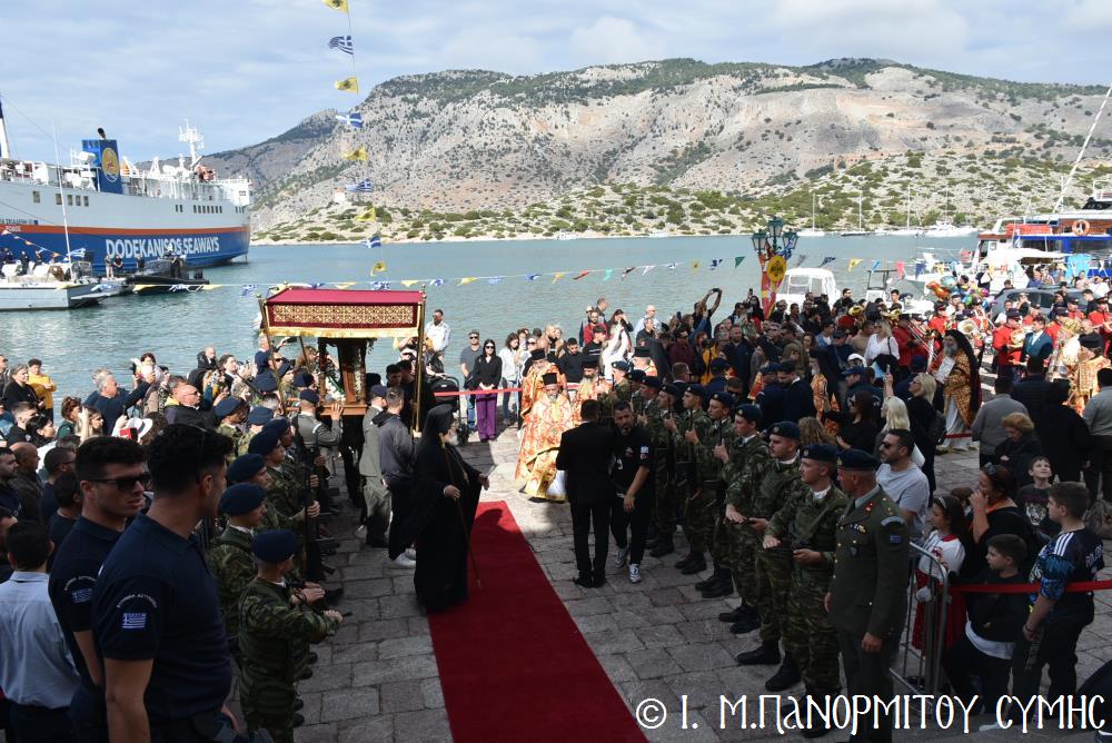 Καθώς κλείνει ἡ αὐλαία καί τῆς ἐφετεινῆς ἑορτῆς, τό φῶς τοῦ δειλινοῦ καθρεφτίζεται στά νερά τοῦ ὅρμου, ὅπου καταφθάνουν αἰῶνες τώρα τά ἀφιερώματα τῶν πιστῶν πού τά πετοῦν στήν ἀβεβαιότητα τῆς θάλασσας καί τῶν κυμάτων, ἀλλά ἐμπιστεύονται μέ ἀταλάντευτη πίστη στόν Παμμέγιστο Ἀρχάγγελο. Τούτη τήν ὥρα ἡ οὐράνια μορφή Του μοιάζει νά ἀγκαλιάζει ὅλους τούς Προσκυνητές, τήν Σύμη καί ὁλόκληρο τό Ἑλληνικό Ἀρχιπέλαγος καί ὄχι μόνον. Ὁ Πανορμίτης παραμένει πάντοτε Ἀπροσμάχητος Φρουρός καί ἀσφαλές καταφύγιο κάθε ψυχῆς πού τόν ἐπικαλεῖται διακαῶς, ἐπαληθεύοντας περίτρανα τούς στίχους τῆς κτητορικῆς ἐπιγραφῆς τοῦ Καθολικοῦ Του:
